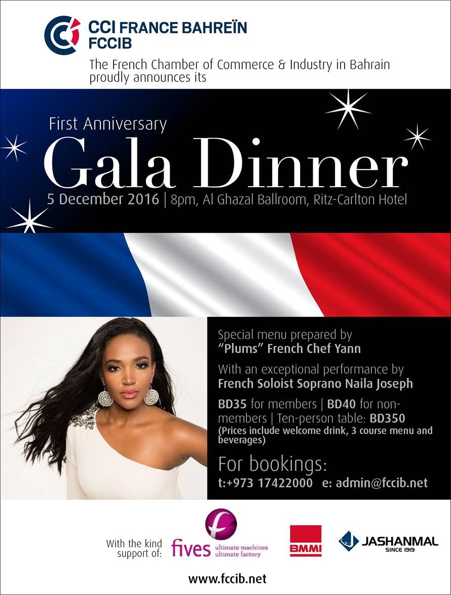 FCCIB will be hosting a Gala Dinner marking its First Anniversary, to be held at the Ritz-Carlton Hotel in Bahrain.