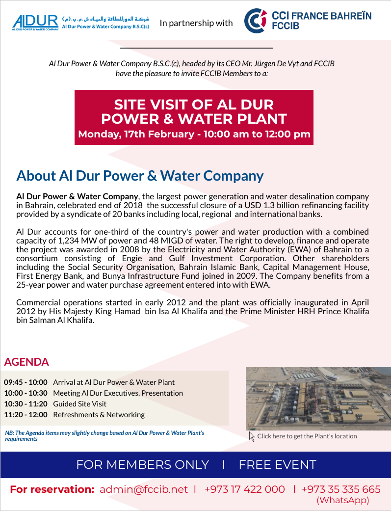 Guided Site Visit of Al Dur Power & Water Plant l Members Only
