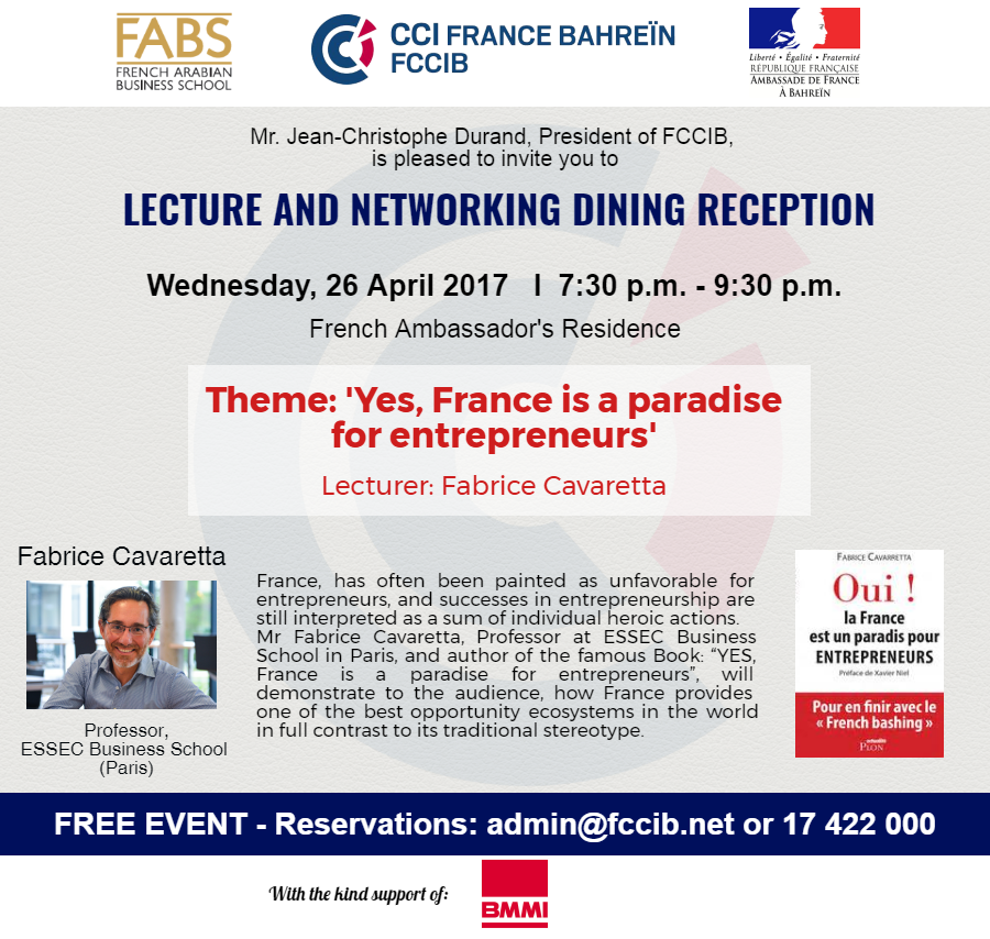 Lecture & networking dining reception: "Yes, France is a paradise for Entrepreneurs"