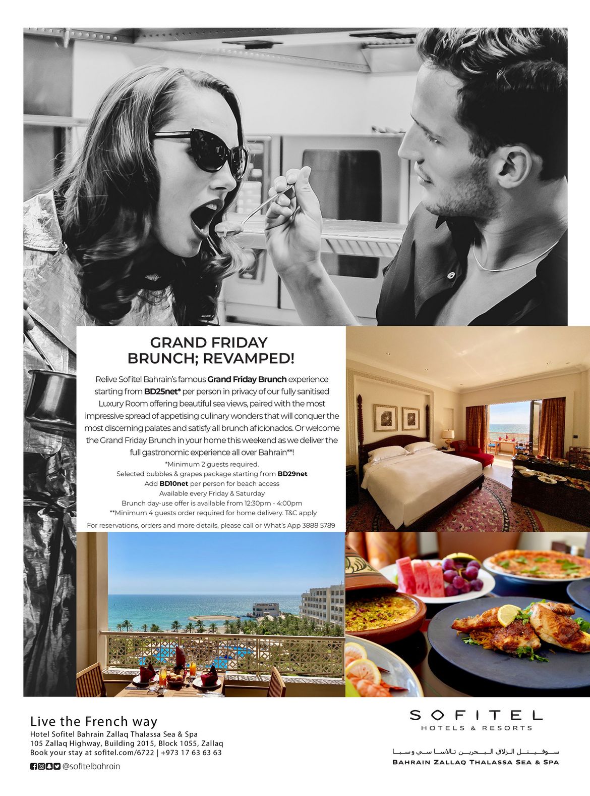 Actus des entreprises Le Friday Brunch du Sofitel est de retour! Le 30/06/2020 Sofitel Zallaq Thalassa Sea & Spa viennent de ré-ouvrir leur Brunch du Vendredi. Pour en savoir plus, veuillez consulter l'offre ci-dessous