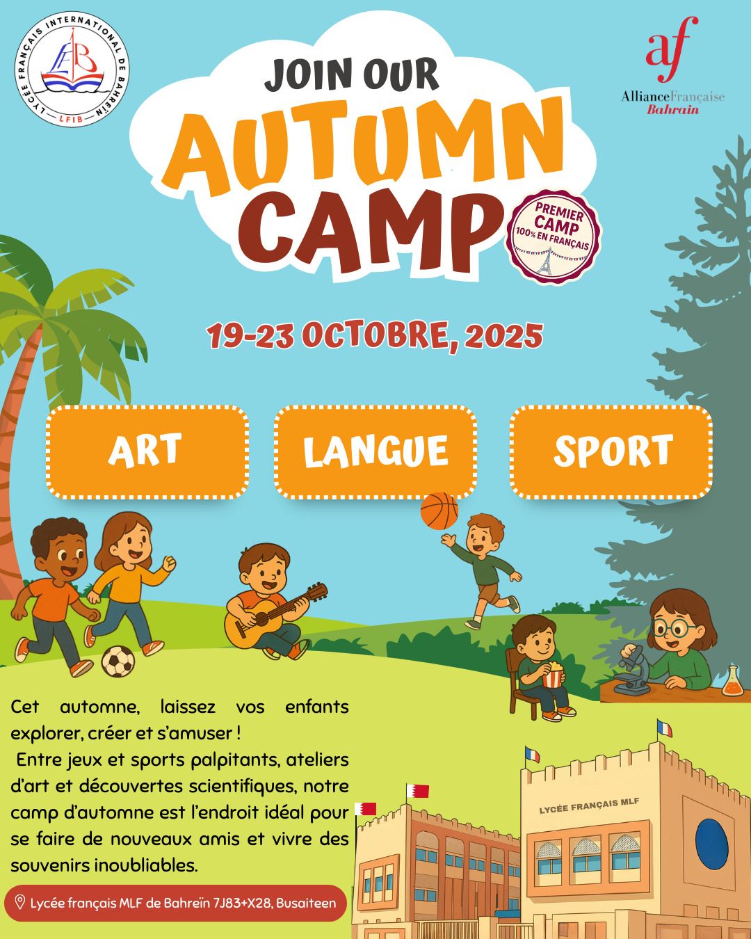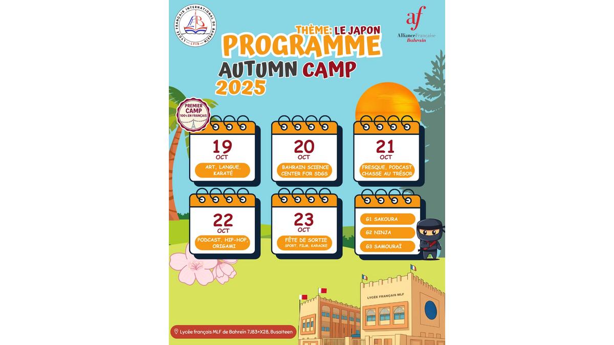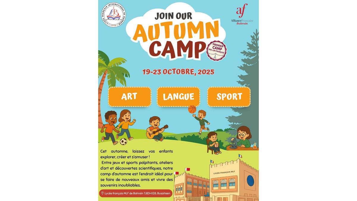 The Alliance Française of Bahrain and the French School MLF Bahrain are organizing a special Autumn Camp from October 19 to 23, designed for children aged 5 to 13 who are either French-speaking or learning French.