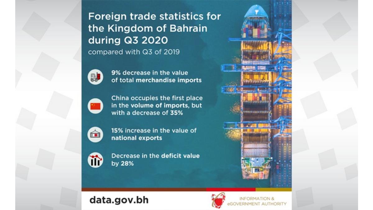 The trade balance, the difference between exports and imports, recorded a deficit totaling BD355 million during the third quarter 2020 compared to BD494 million for the same quarter of the previous year, an improvement of the trade balance by 28%.
