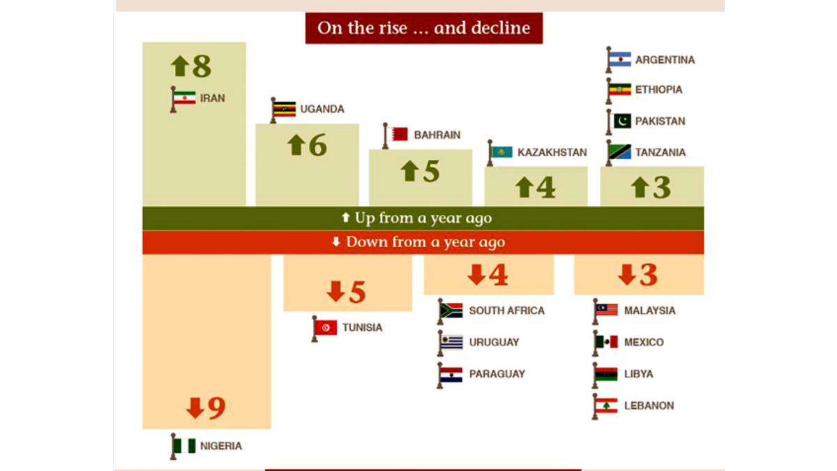 Outside of the Gulf countries and Turkey, Egypt (20) and Morocco (22) were the Mena countries ranking highest in the index.