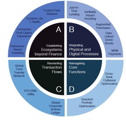 The report highlights four innovation pathways that financial institutions can explore as they seek to build emerging technology capabilities into core strategies. These pathways will require establishing ecosystems beyond finance, integrating physical and digital processes, reorienting transaction flows, and reimagining core functions.