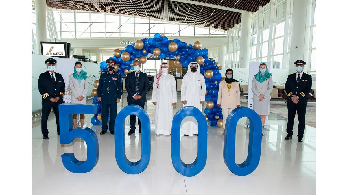 Bahrain's national carrier Gulf Air today celebrated the 5000th flight departure from Bahrain International Airport’s new terminal with flight GF003 to London Heathrow marking the operational milestone.