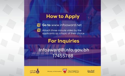 The applicants may register via the Ministry of Information's website which would direct the applicants to the registration form for either the Arabic or English competitions and will be requested to attach a three-minute-long introductory video about a topic of their choice.
