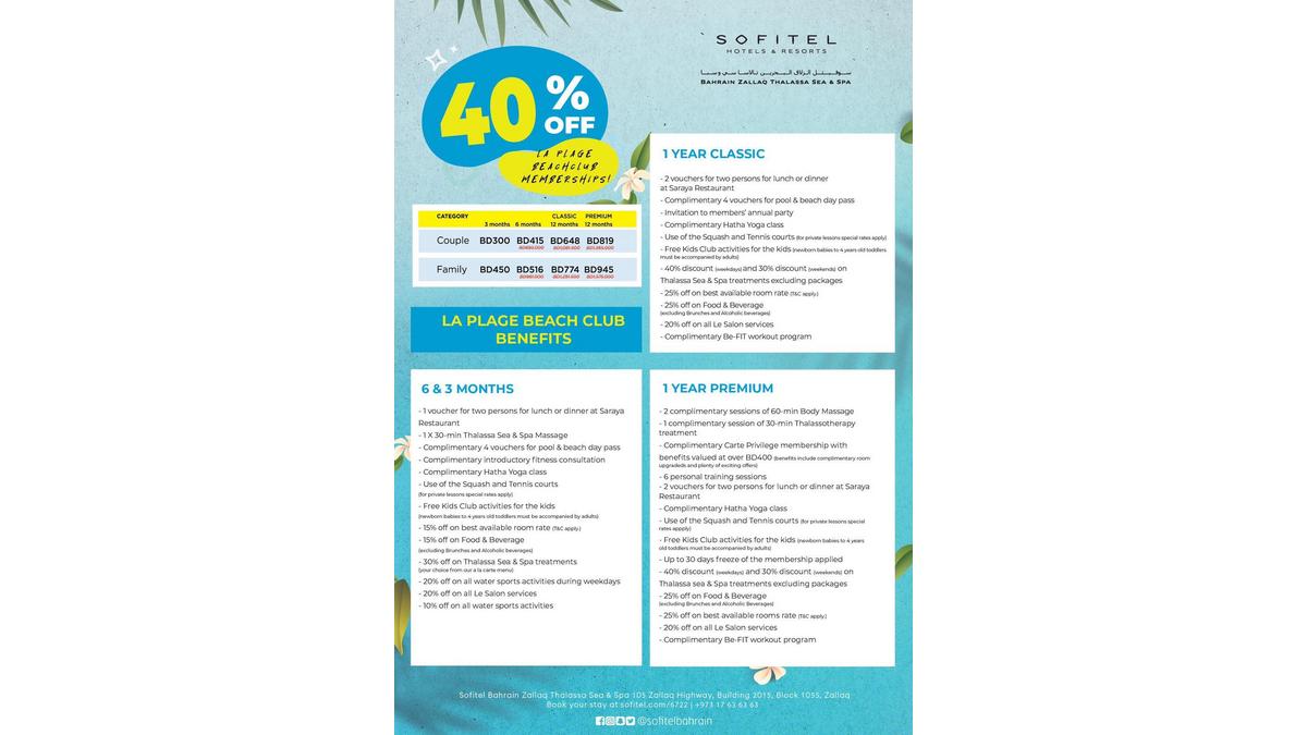 Sofitel Zallaq Thalassa & Spa offers 40% discount on La Plage Membership