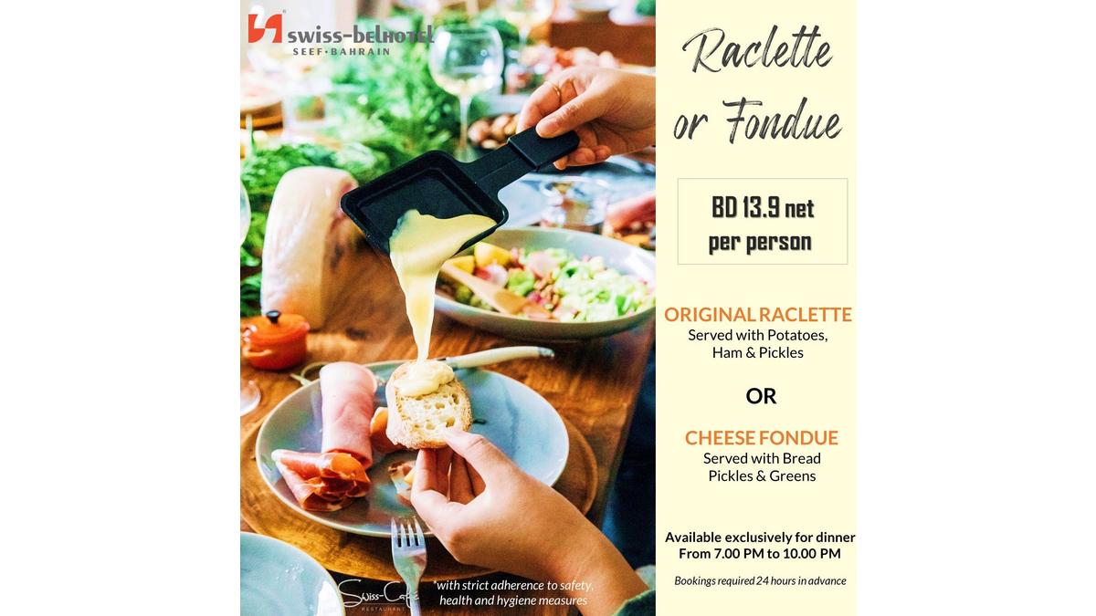 Swiss-Bel Hotel started the Raclette or Fondue Offer, for 13.9 BHD!
