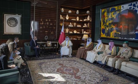 National Security Advisor and Royal Guard Commander, Major-General HH Shaikh Nasser bin Hamad Al Khalifa, today received the Secretary-General for National Defence and Security of France, Stéphane Bouillon, on the sidelines of the 2021 Manama Dialogue.